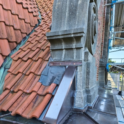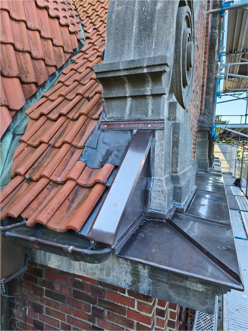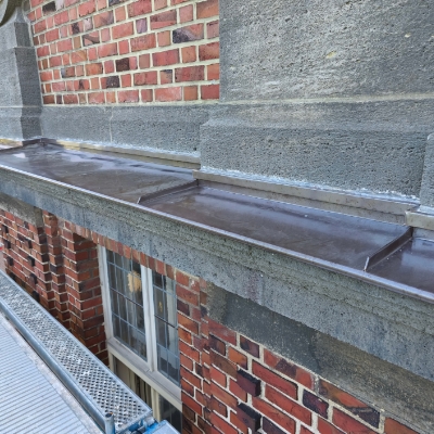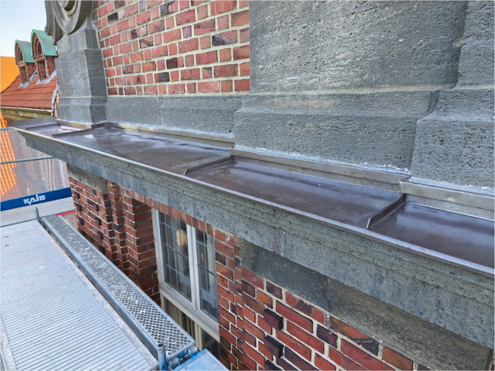Kupfer Oxyd-Gesimsabdeckung mit Wulst-Tropfkante und Bleiverstemmung