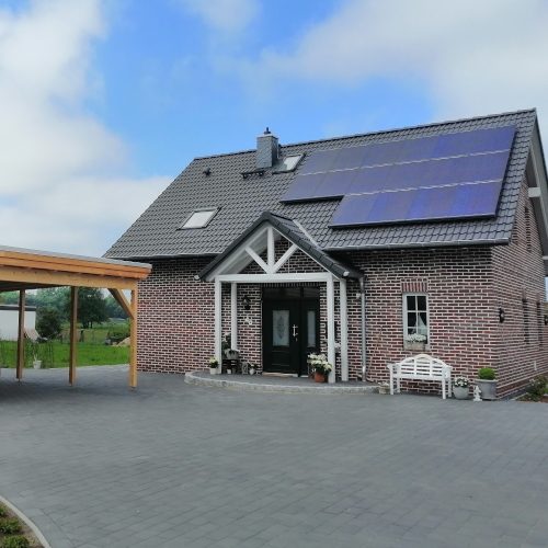 Massive Bauweise mit WDVS und Klinkerriemchen, Brennstoffzelle und PV-Anlage zur