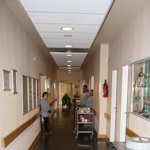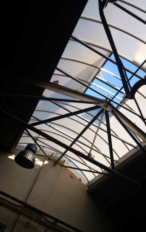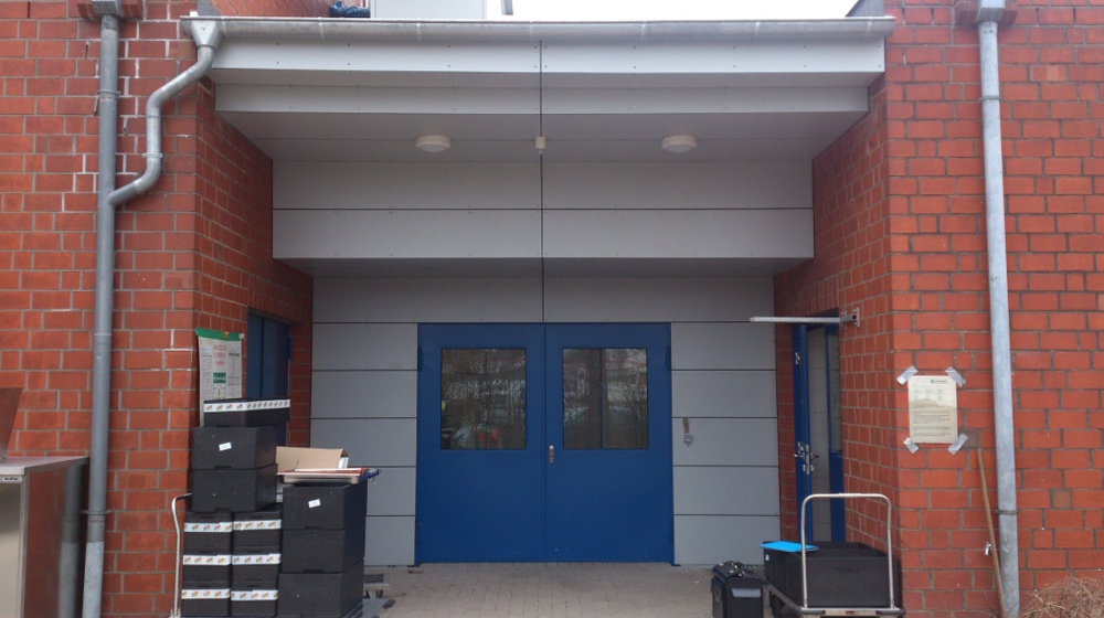 Tausch von Drahtglaseindeckung in Kunststoff-Doppelstegplatten, Erneuerung von Unterkonstruktionen, Eindichtung in Kunststoffeindeckung, Einbau von RWA-Anlagen entsprechend des Brandschutzkonzepts