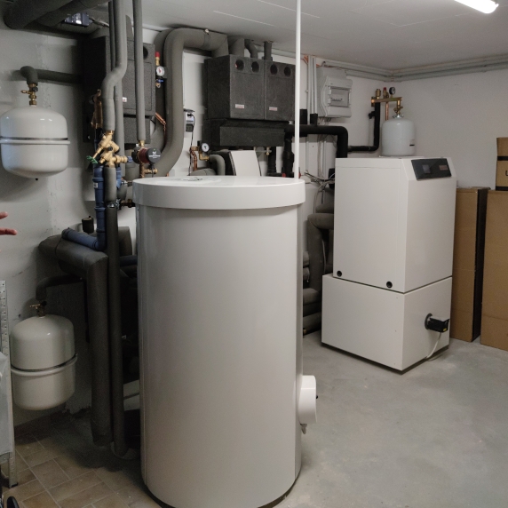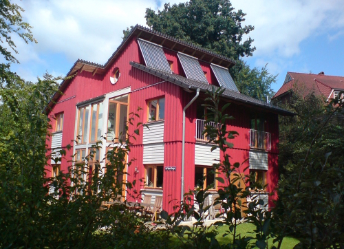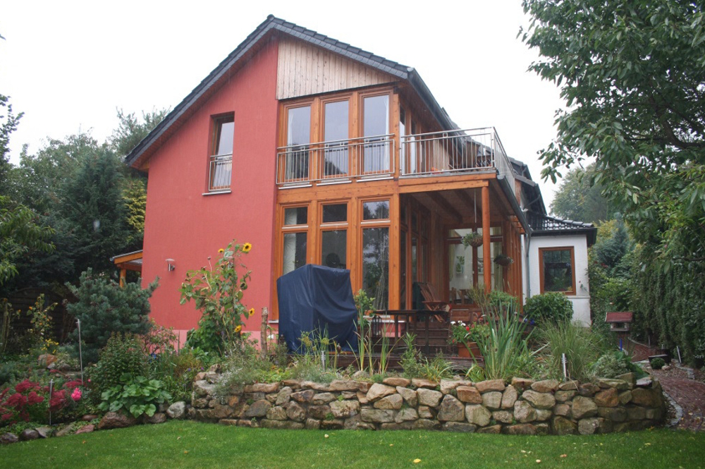 Holzrahmenbauweise, Innenwände massiv, Pelletofen, thermische Solaranlage, Lüftung mit Wärmerückgewinnung