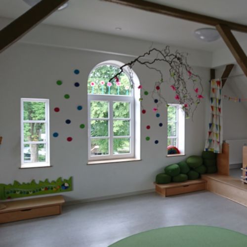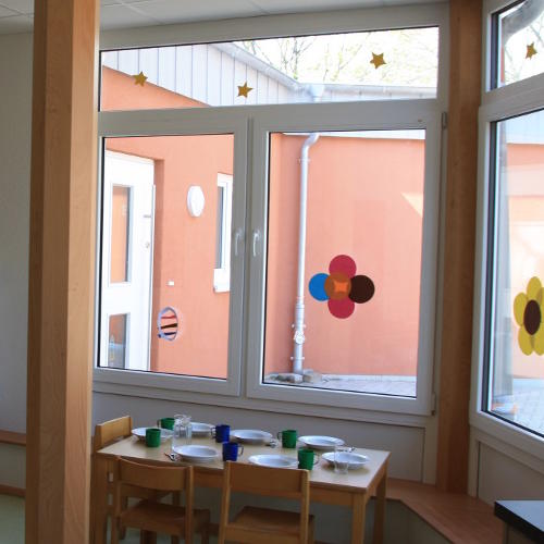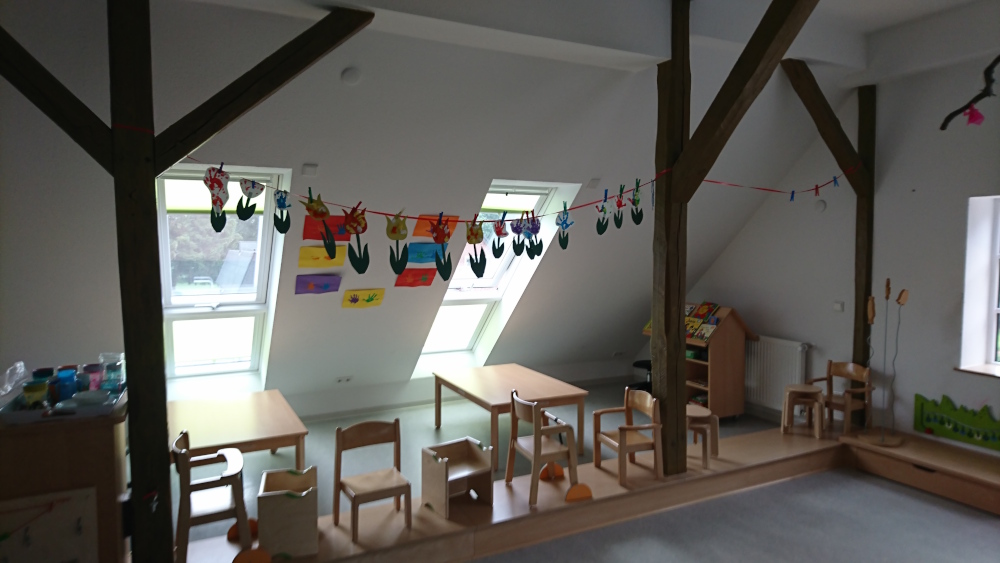 Dachgeschossausbau zu einer Krippeneinrichtung, mit Neubau einer Gaube und Rettungsrutsche, BJ 2016